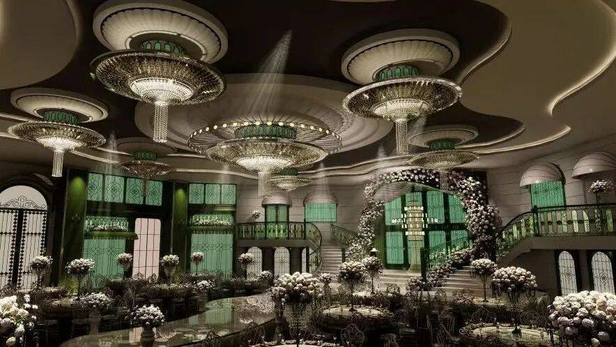 浙江九虎商贸广场引入的15000㎡歌洛菲宴会艺术中心,涵盖多个不同风格的宴会厅,可满足多元宴会需求。