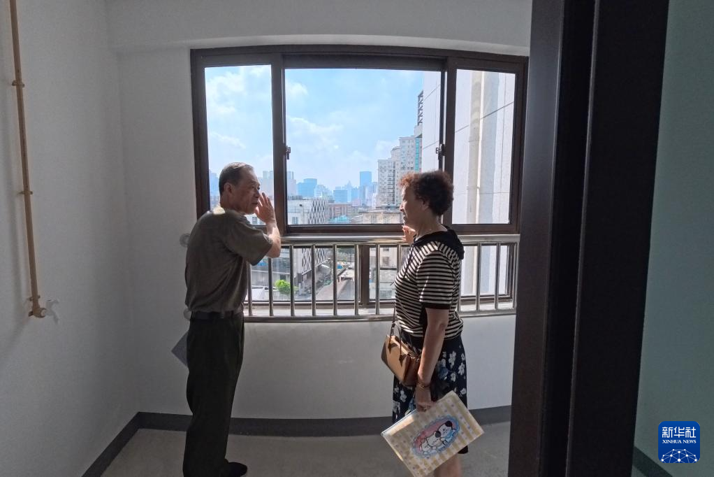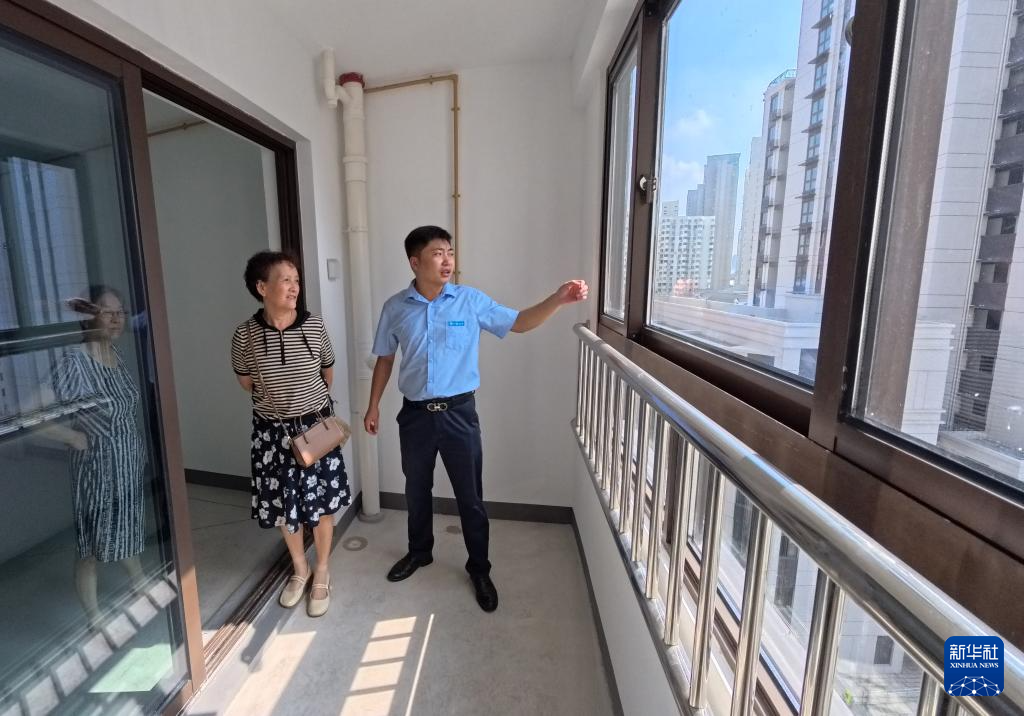 9月15日,中建二局工作人员在新房内向居民介绍房屋结构。
