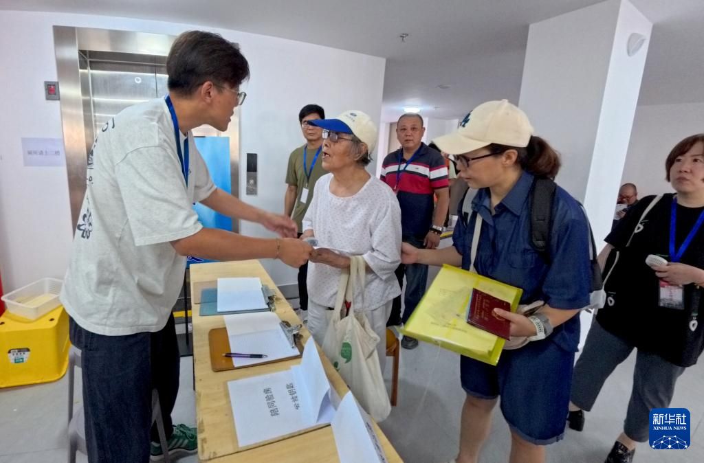 9月15日,工作人员(左侧)为居民介绍办理回搬的步骤。